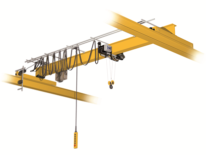 Top running bridge crane is the most common and flexible bridge crane type. Certex sells and mounts top running bridge cranes up to 250 ton. Top running bridge crane needs less room then other bridge cranes. Different design solutions ensure suitability to all types of spaces. According to the needed lifting height and load limit there are options of one beamed and two beamed cranes.