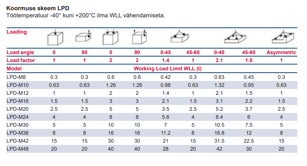 - Märkus: Enne kasutamist vaadake üle WLL diagramm, et valida oma seadme jaoks sobiv LPD.