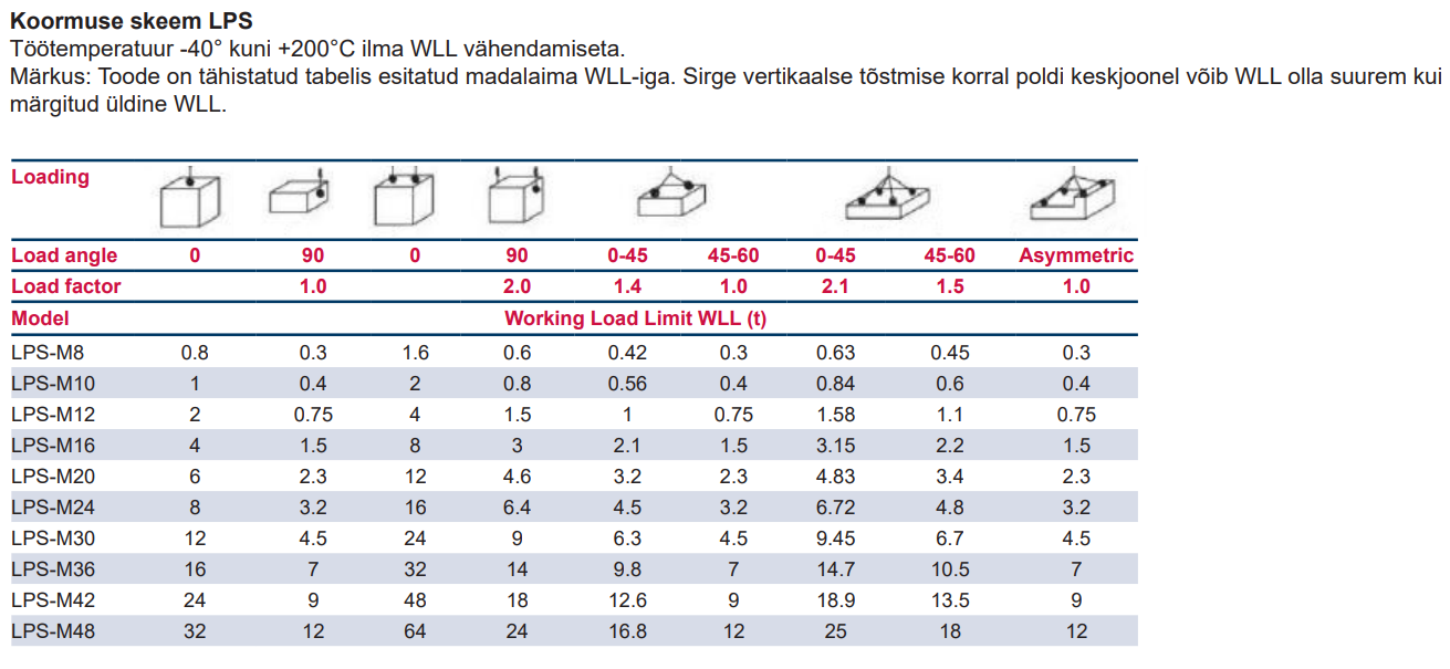 - Märkus: Enne kasutamist vaadake üle WLL diagramm, et valida oma seadme jaoks sobiv LPS.